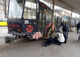 В Днепре трамвай сошел с рельсов и придавил женщину на остановке