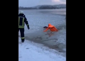 В Киеве спасли провалившегося под лед пса