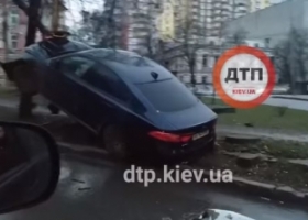 В Киеве авто "залетело" на дерево: видео необычного ДТП