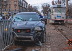 В Днипре авто влетело в трамвайную остановку: пострадала женщина