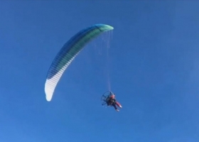Под Киевом Санта-Клаус на мотопараплане забросал детскую площадку конфетами