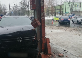В Харькове автомобиль въехал в остановку общественного транспорта, пострадал водитель