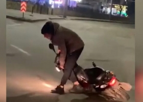 В Киеве пьяный мопедист устроил на дороге "родео" с мотороллером