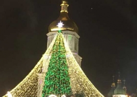 В Киеве зажгли главную елку Украины. После включения на ней загорелись декорации