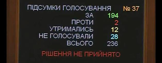 За постановление об ответственности Кабинета министров Украины (относительно резолюции недоверия Кабинету министров) №4080 проголосовали 194 народных депутатов при 226 необходимых.