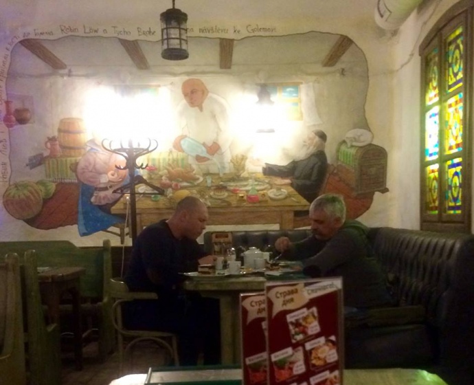 Издание публикует еще одну фотографию Кивы и Корчинского в одном из киевских заведений «У Голема» в центре столицы.