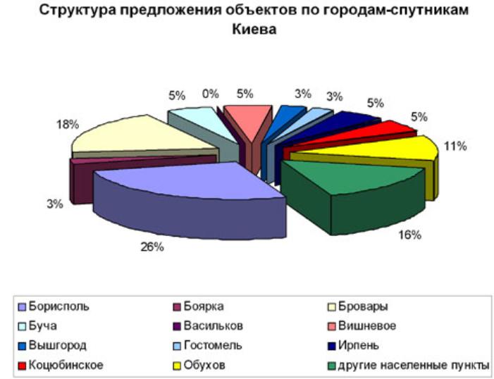 В результате анализа первичного рынка пригорода Киева было установлено, что за последних 5 месяцев существенно расширилось предложение продаваемых объектов в Киево-Святошинском районе, Броварах и Борисполе.