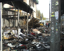 Это уже третий пожар на вещевом рынке «Шулявка» и очевидно последний, поскольку уничтожены не только торговые ряды рынка, но и окончательно приведен в аварийное состояние мост