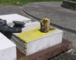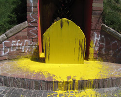 В этот раз все похоже на хорошо спланированную акцию. Как рассказал архитектор Борис Дедов, последнее время молодежь очень интересуется памятником, много туристов, просто людей интересующихся историей. Возле памятника всегда много живых цветов.