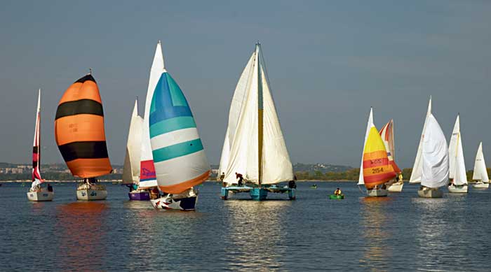 Кроме того, любителям зрелищ советуем посетить мероприятие, которое начнется в 12 часов в оболонском заливе. Около тридцати парусников разных классов стартуют с Оболони, потом пройдут по Днепру к центру Киева, там сделают пару кругов и финишируют опять в заливе. Регату можно будет увидеть не только с набережной, но и со склонов Днепра (в частности, с Владимирской горы).