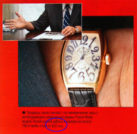 Так, в 2003-м Петр Николаевич носил часы швейцарской марки Franck Muller.