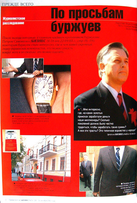 В 2003 году газета "Бизнес" посвятила Петру Симоненко целую страницу под названием «По просьбам всех буржуев», где развенчала миф об аскетической жизни вождя украинских коммунистов.