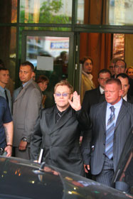 Весь день перед выступлением Элтон Джон просидел у себя в номере. Напомним, что певец остановился в «Премьер-Палаце» (апартаменты стоят около $4 тысяч в сутки). Под окнами с раннего утра топтались и вопили фаны. Певец послал к ним своего супруга Дэвида Ферниша со словами благодарности. Ровно в семь Элтон отправился на Майдан. Выезжал из внутреннего паркинга отеля. Когда музыкант садился в машину, охранники распахнули черные зонты и прикрыли звезду (украинские папарацци с таким ходом сталкиваются впервые), передает «Комсомольская правда».