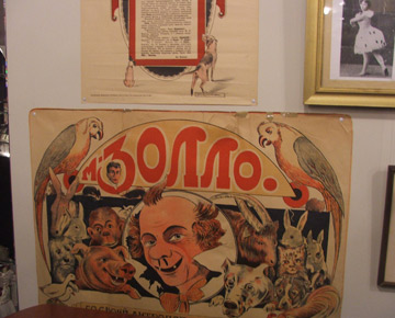 Среди экспонатов были и первые трюки Юрия Никулина, цирковые афиши , маски и прочие атрибуты.