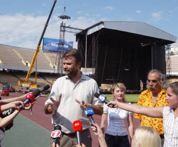 По его словам, для установки сцены прибыла специальная бригада из Лондона в составе 160 человек, которым также будут помогать украинские рабочие.