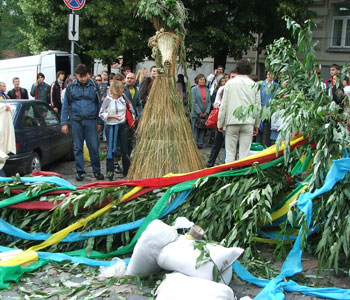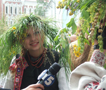 И хотя погода в этот раз выдалась совсем не «купальская», участники фестиваля с радостью и вдохновением начали праздничный ход от Андреевской церкви (на фото).