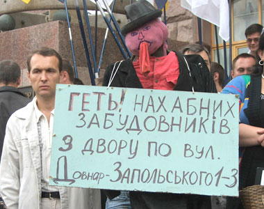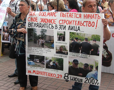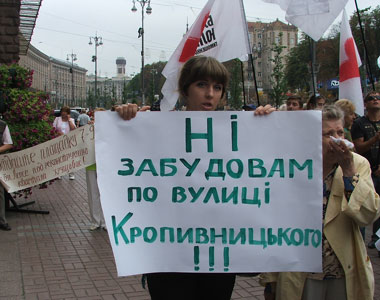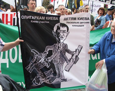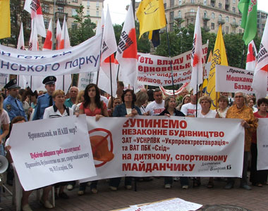 Удивительно, но любители акций протеста и громкого рупора собрались на сей раз без требований смещения городского председателя Леонида Черновецкого. Напротив, взывая к добродетелям мэра и его долгу перед киеявлянами, пикетчики (не более 1000 человек) настаивали на закрытии скандальных стройплощадок в зеленых зонах города.
