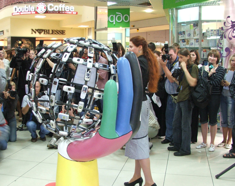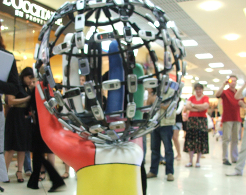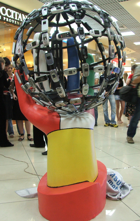 Мобильный телефон перестал быть дежурным символом глобализации и, похоже, превращается в героя нашего времени. В этом уверены молодые украинские мастера Олег Резников и Алексей Бойко, чья работа была представлена вчера в холле одного из столичных торговых центров.
