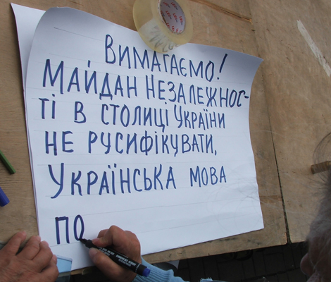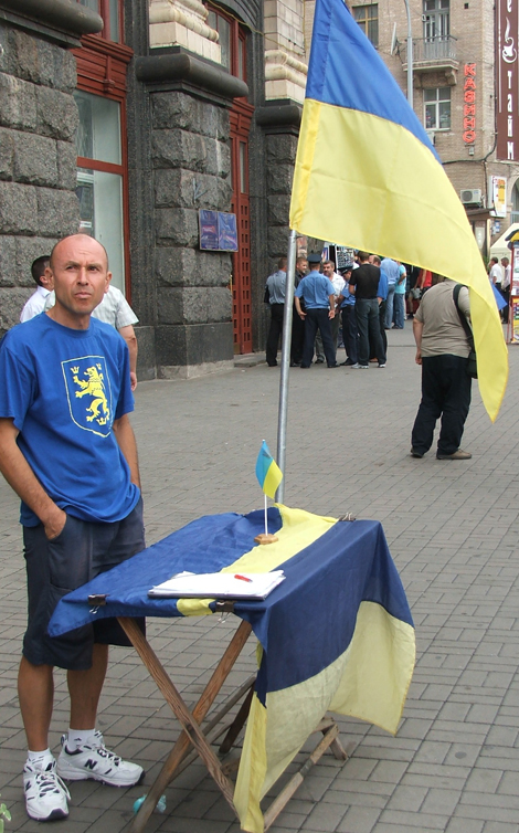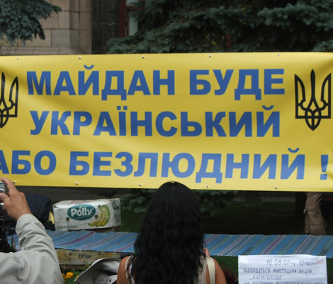На Майдан Независимости вернулась украинская национальная символика, музыка и литература. Для этого активисты общественных организаций и частные предприниматели расчистили от африканских туй пространство перед Главпочтамтом и начали бессрочную акцию по борьбе с государственной русификацией, сообщает корреспондент RUpor`а.