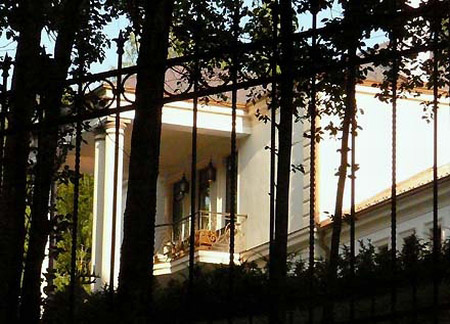 Окруженный двумя заборами – кованым с одной стороны и сплошным – с другой, дворец Януковича оснащен белоснежными колоннами и коваными балкончиками. Кованый забор, к слову, был заказан специально итальянским мастерам, потому что в Украине, оказывается, такого не делают. В интерьере помещения, как рассказали строители, много мрамора, художественной резьбы и лепнины, резная мебель. Во дворе за три месяца выкопали винный погреб площадью четыре на четыре, выложенный фемом, похожим на плитку на Майдане. "Янык очень любит испанское вино и заказал оттуда целую партию", - объясняет разговорчивый рабочий. А за домом растет голубая ель, метров шесть-семь высотой – Виктор Федорович любит праздновать новый год на природе и с живыми деревьями.