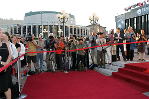 Сначала кинозвезды и политики прошествовали по красной дорожке перед Дворцом кино, на фасаде которого в этом году дизайнер Данте Ферретти устроил инсталляцию, посвященную Репетиции оркестра Федерико Феллини - это гигантский стальной шар, разрушающий стену.