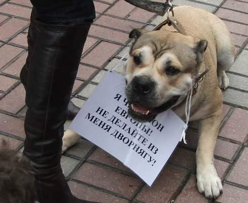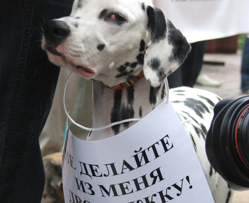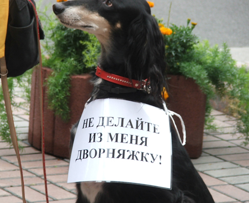 Кинологи и их животные протестуют против варварских действий столичного чиновника уничтожить организацию, состоящую из 300 тысяч собаководов.