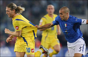 Вчера в Киеве состоялся поединок отборочного цикла на Евро-2008 между сборными Украины и Италии. Обе команды были настроены только на победу, но итальянцы не скрывали, что в киевском поединке их устроит и ничья.