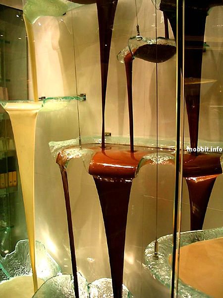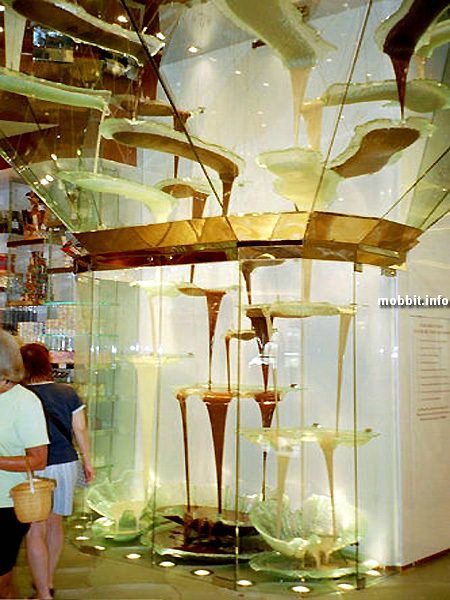 В фонтане для сладкоежек циркулирует 950 кг жидкого шоколада разных видов, а высота его составляет 8 метров.