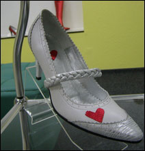 Самые изящные туфли – «Юлия Тимошенко»: белые, с отделкой из кожи рептилий, украшенные косой и красными сердцами. Самые скромные – «Петр Симоненко»: красные с минимумом деталей и украшений, на которых только серп и молот.