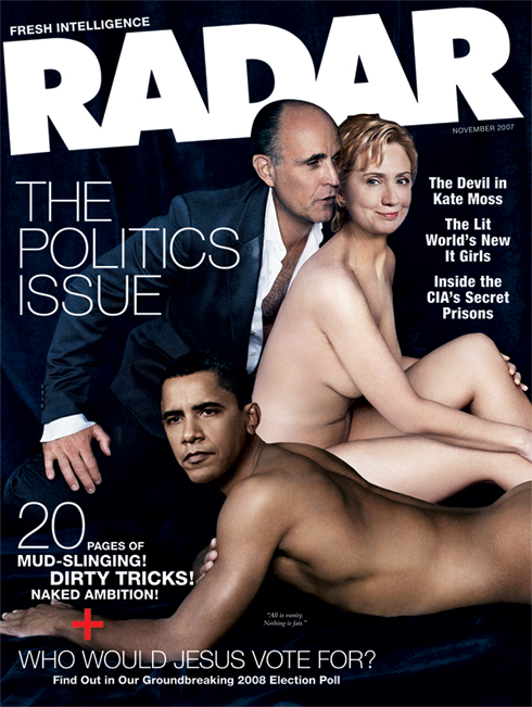 Американский журнал Radar на обложке ноябрьского номера опубликовал фотоколлаж, на котором оказались три кандидата в президенты США – и двое из них обнажены.