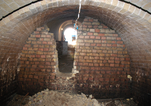 Пришедшие на это место внутренние войска ЧК-НКВД перестроили все на свой лад. Крепостной вал они использовали вместо опорной стены будущего подземного туннеля, сооруженного с помощью бетонных блоков и перекрытий. Внутри все было зашито кирпичом местного производства.