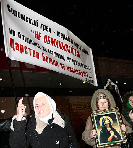 Возмущенные граждане с транспарантами и иконами в руках пытались вразумить людей от посещения концерта. С надписями "Не впусти в свою душу вирус (беса) гея" и с требованиями к власти прекратить развращать народ встречали в Киеве российского артиста Бориса Моисеева.