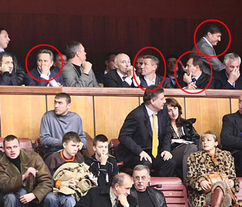 Неподалеку от них можно было увидеть еще несколько известных людей. На матч пришли бютовец Николай Томенко, "свободный демократ" Михаил Бродский и прыгун Сергей Бубка.