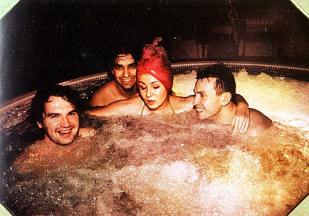 | Иру Билык всегда окружали мужчины. Налево - молоденький Саша Пономарев, а позади Билык - отец ее сына Оверчук |