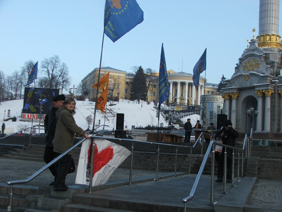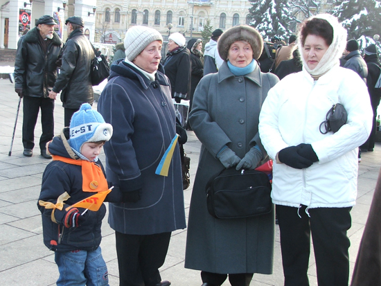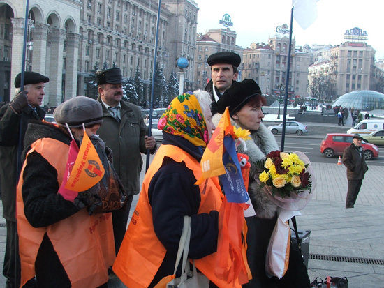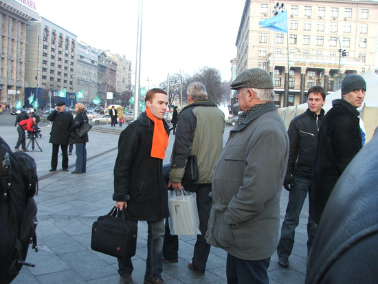 С каждым годом отмечать годовщину „оранжевой революции” приходят все меньше ее участников. В этот раз на Майдане собралось около 200 человек – в основном среднего и преклонного возраста. А вот героиня Майдана баба Параска замечена не была, а, может, еще не поспела. Одна из экс-революционерок рассказала корреспонденту RUpor`a, что представители политических сил обещали заглянуть на Майдан ближе к вечеру для неформального общения с собравшимися, но от выступлений отказались заранее.
