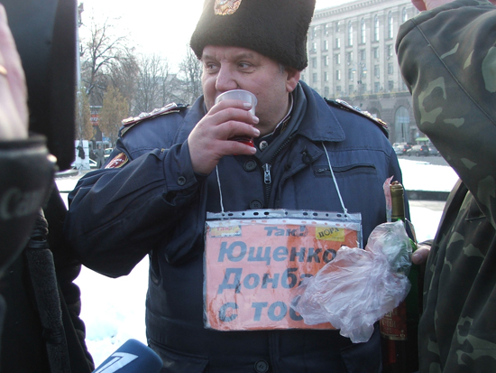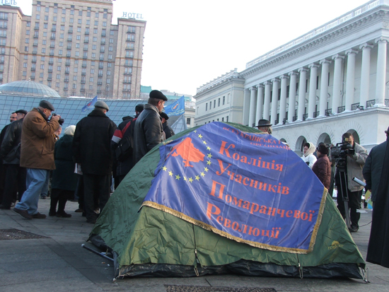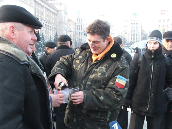Cамые отважные ветераны уже начали под аккомпанемент революционных хитов угощать собравшихся полевыми «100 грамм» и рассказывать о славных «оранжевых» деньках.