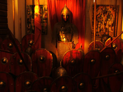 В основе реконструкции оставлен первозданный фундамент XI ст. В расположенных сбоку от главного проезда комнатах экспозиции можно полюбоваться одеянием княжеских сановников и крепостных стражей.