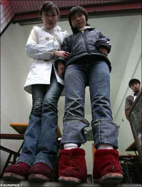 Wang Fang из Chongqing, что в Китае, родилась с ногами, растущими наоборот. Сейчас ей 27 лет, она имеет пятилетнего ребенка с нормальными ногами, работает официанткой.