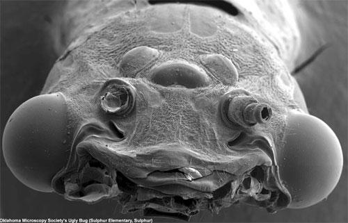 Этой бабочке из семейства вислокрылых, которая большую часть жизни проводит в личиночном состоянии, учёные увеличили «лицо» под электронным микроскопом и обнаружили, что оно не слишком симпатично.