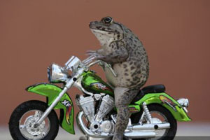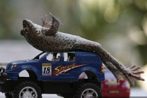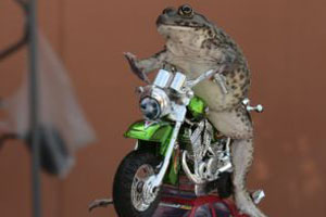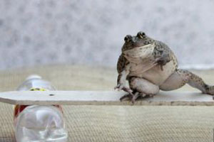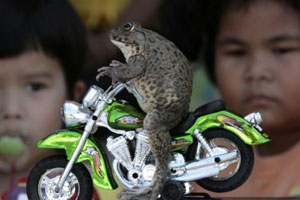 Живущая в Патайе, лягушка Уи любит играть с человеческими игрушками. Хозяйка лягушки обеспечила земноводное миниатюрными мотоциклами, машинками и бордами.