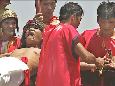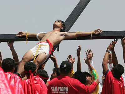 Хотя официальная римско-католическая церковь и не одобряет происходящее на Филлипиных, пасхальные "распятия" и самобичевание (на снимке) являются давней традицией в единственной азиатской стране с преимущественно католическим населением.