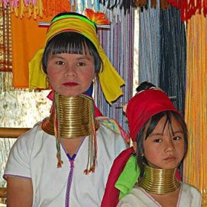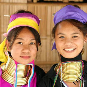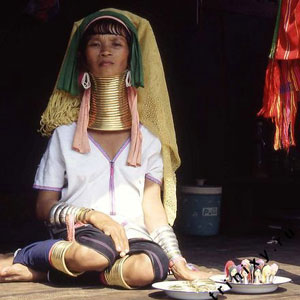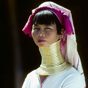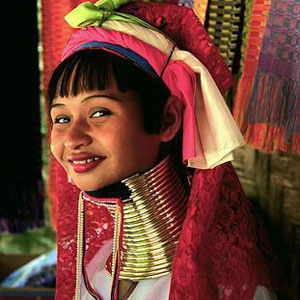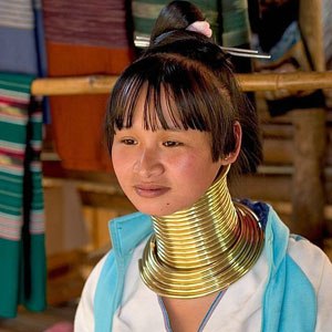 Тайские девушки из рода падунг носят на шеях ошейники из чистого золота, за счет чего шея очень сильно удлиняется.