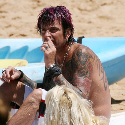 Рокер Томми Ли любит поковырять в носу в общественных местах, там, где тепло и греет солнце - например, на пляже.