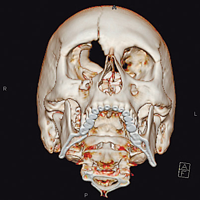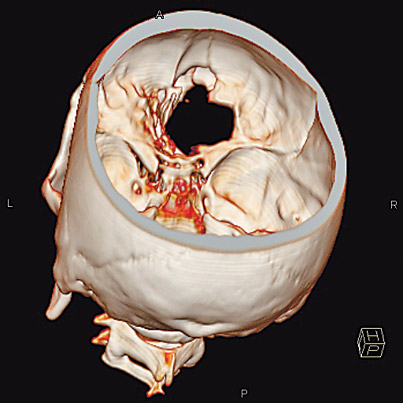 Вылетевшая петарда пробила глазницу и взорвалась. Как оказалось, взрыв задел лобную и теменную кости, сломал стенки глазниц, а в черепе образовалась дыра.