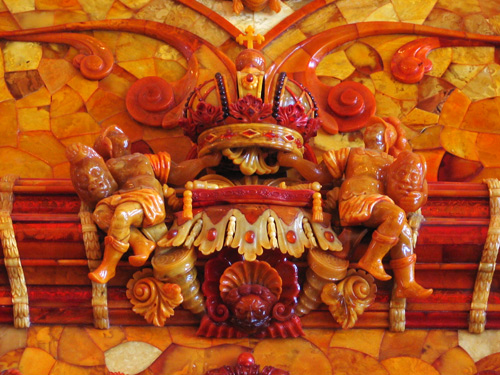Янтарную комнату в 1716 году король Пруссии Фридрих Вильгельм Первый подарил Петру Первому. Она была смонтирована сначала в Зимнем дворце в Санкт-Петербурге, а в 1755 году перенесена в Царское Село. В годы Великой Отечественной войны гитлеровцы вывезли Янтарную комнату в Кенигсберг, ее дальнейшая судьба неизвестна.