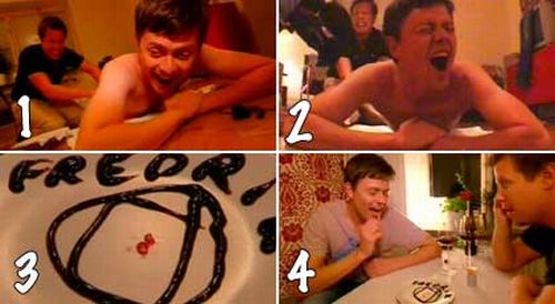 Тошнотворное действо поедания собственной задницы ведущий прокомментировал так: "Отличный вкус. Немного напоминает суши".