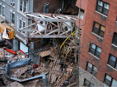 В результате инцидента погибли, по меньшей мере, четыре человека, 10 получили ранения. Инцидент произошел в Нью-Йорке, Манхэттен, передает Копипаст. Кран высотой с 20-этажный дом упал на ряд строящихся зданий, частично разрушив несколько из них и полностью уничтожив небольшую постройку.