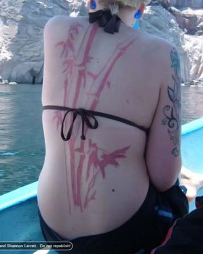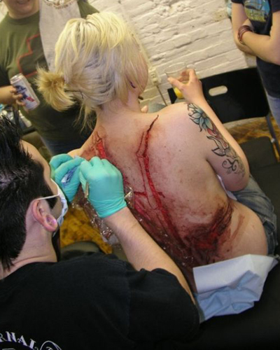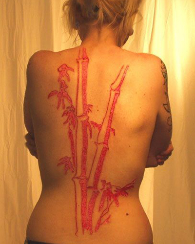 Ветви бамбука на спине выглядит красиво и изысканно. Процесс же создания сего художества представляет собой весьма жуткое и кровавое зрелище, пишет Копипаст.