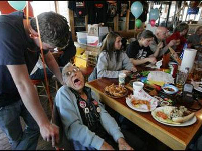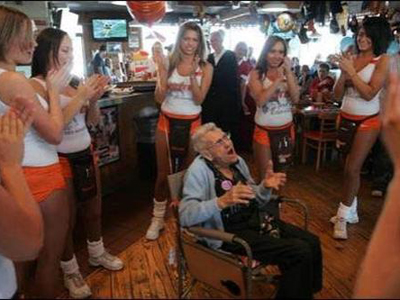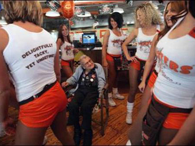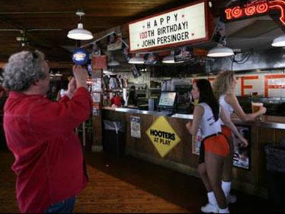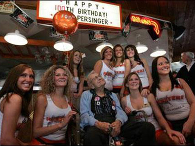Житель Айовы, Джон Персингер закатился на своё 100-летие в один из ресторанов сети Хутерс, известной своими «горячими куриными крыльями» и «горячими» официантками. Об этом сообщает TOPNEWS.