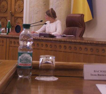«Я хотела бы немножко снять напряжение и сказать, что мы недавно разговаривали с Виктором Михайловичем (Пинзеником – RUpor), и он говорит, что когда я докладывала по очередной программе на нашем совещании, то Виктор Михайлович налил мне воды, хотел мне принести и немножко помочь выступать премьер-министру, тогда Турчинов сказал: «Не неси ей воду, потому что она еще два часа будет выступать». Я благодарю, что вы воду принесли. Я буду сокращать выступление и буду делать его более лаконичным».